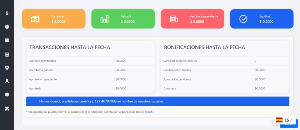 Organizaciones benéficas: Si gustas, puedes donar el 10% de tus beneficios.