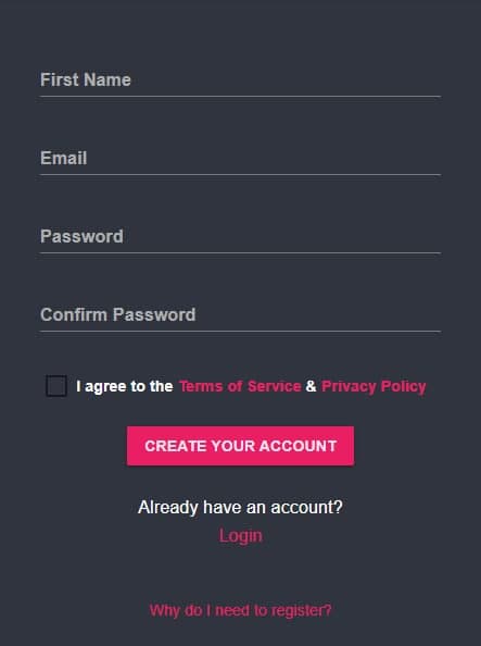 Después clicaremos en «Register», rellenaremos los datos que nos solicitan, correo electrónico y contraseña con el que queremos registrarnos y clicaremos en «Create Your Account» para crear nuestra cuenta.